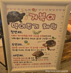 먼저 육지 거북이 먹이 주기 체험을 했어요.