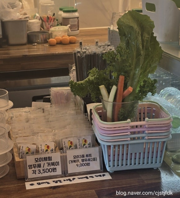 자리로 음료수응 갖다 주셔서 마시면서 앵무새들이랑 놀았어요.