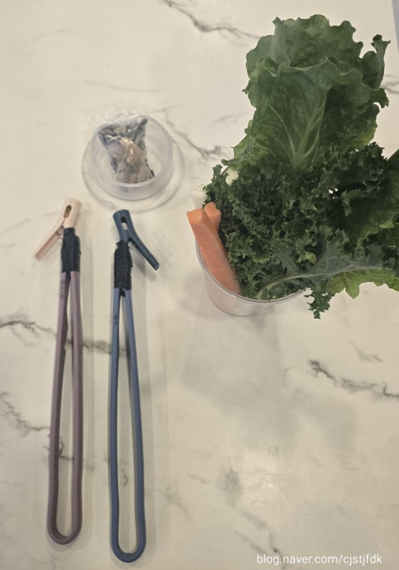 집게에 당근, 상추 등을 집어서 손이 닿지 않게 멀리서 주면 와서 먹더라고요.