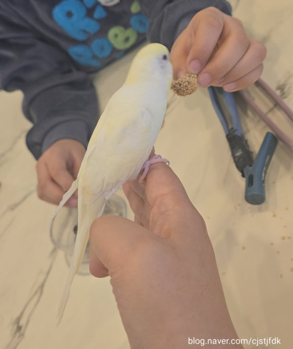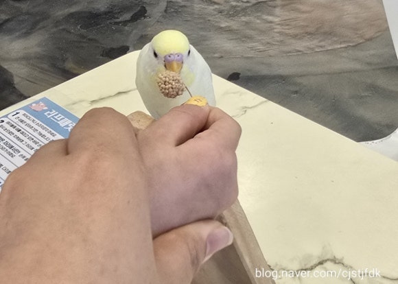 앉아서 우리 앵무새들에게 밥을 주기도 하고.