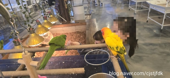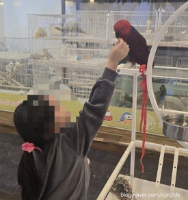 - 이용 수칙: 큰 새들은 모이 주기만 가능하며 절대 만지면 안 돼요. 또한 앵무새를 덮석 잡거나 꼬리, 깃털을 잡아당기는 행위는 금물입니다. 앵무새는 앉은 자리에서만 교감해야 하며, 데리고 돌아다니면 다칠 수 있으니 주의해 주세요.