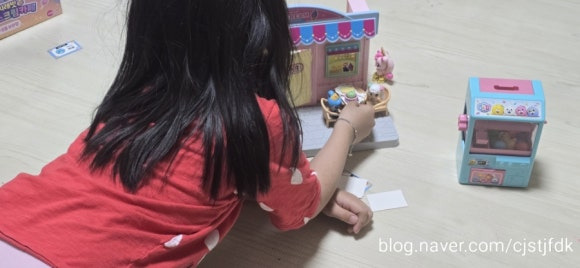 아이와 저는 손님과 점원 역할을 바꿔가며 놀았어요.
