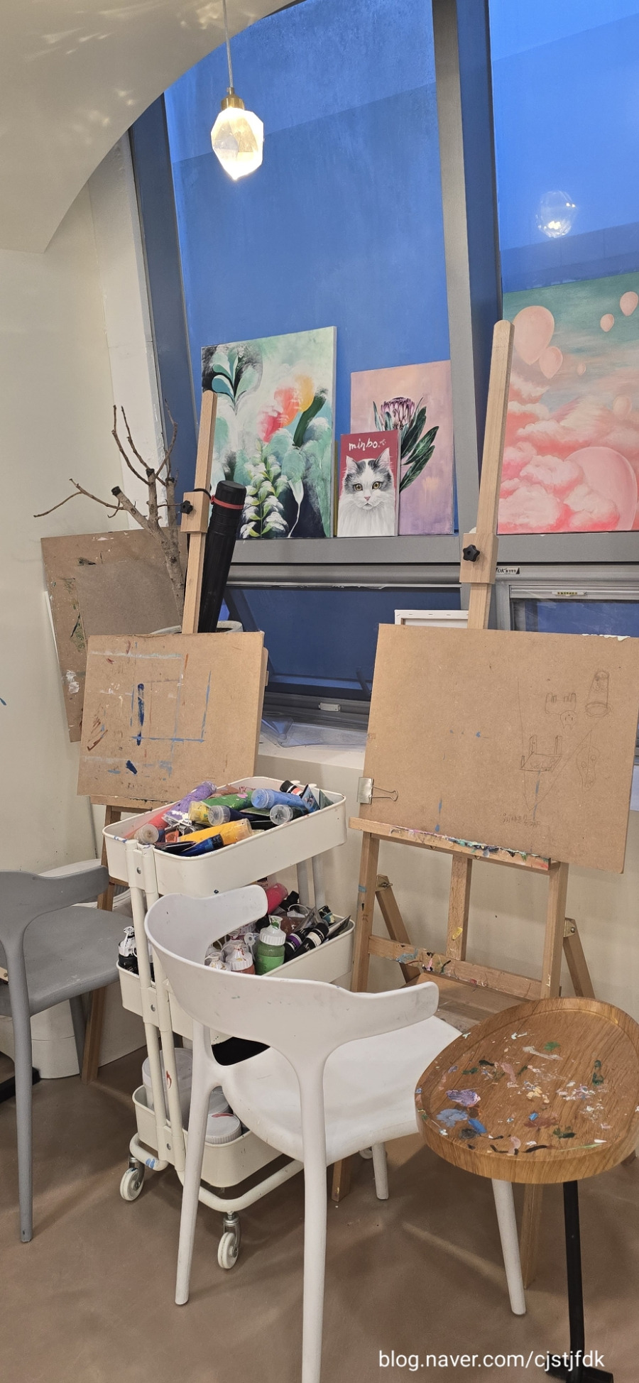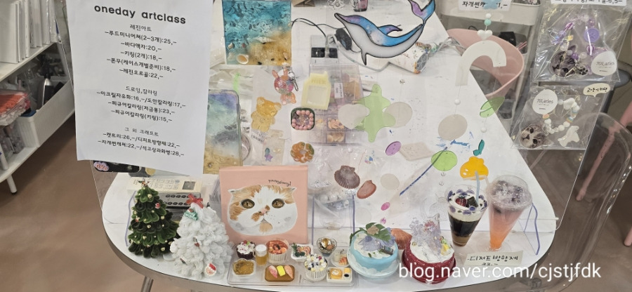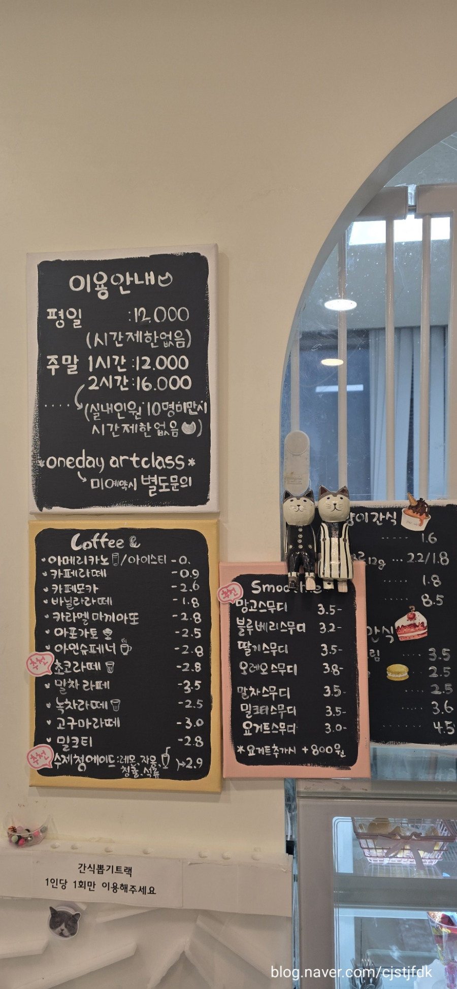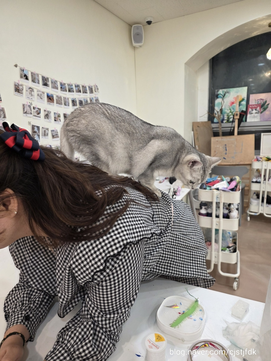 701아를고양이카페는 단순히 고양이와 시간을 보내는 공간이 아니라, 사장님 덕분에 그림 또는 만들기 원데이 클래스까지 가능한 곳이에요.