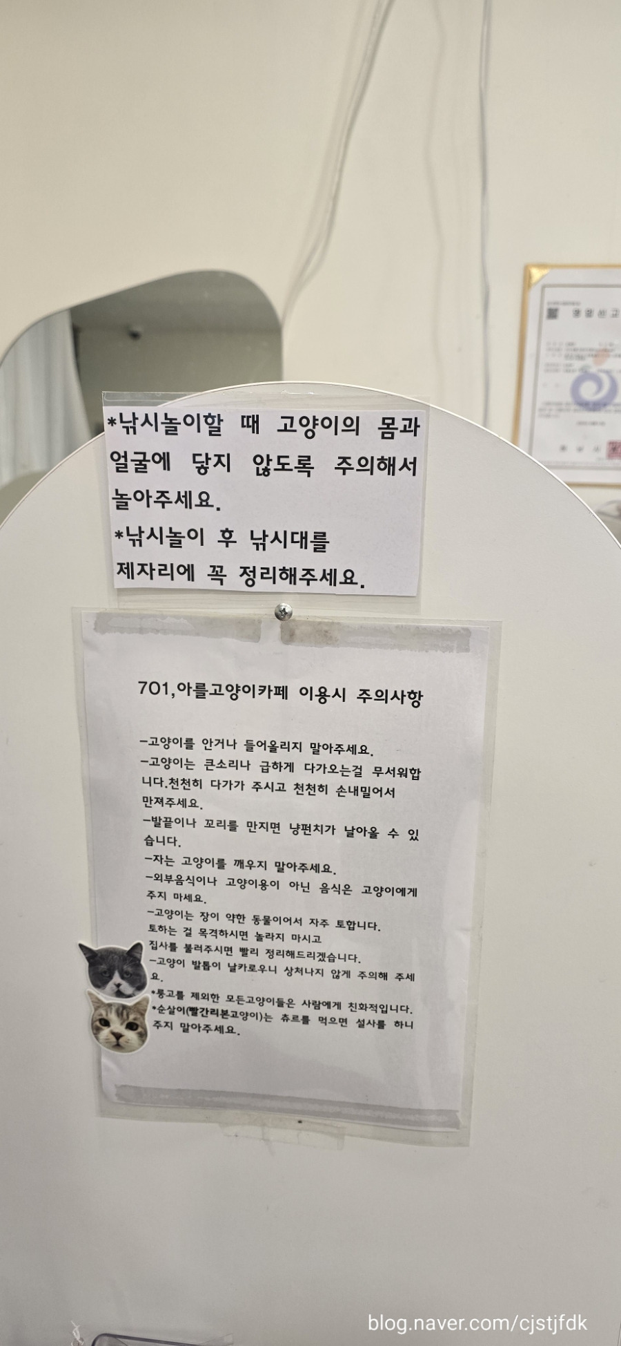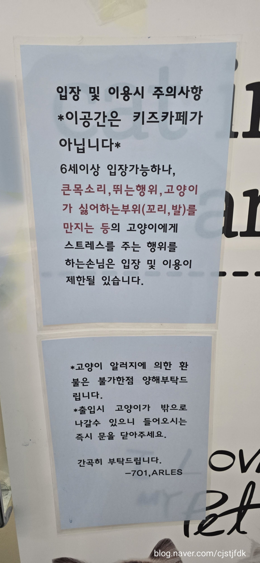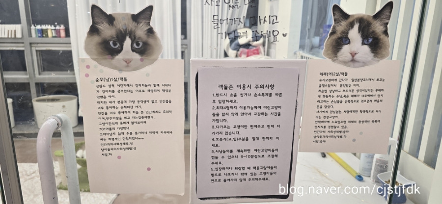고양이 카페를 가보면 다 비슷한 규칙이 있지요.