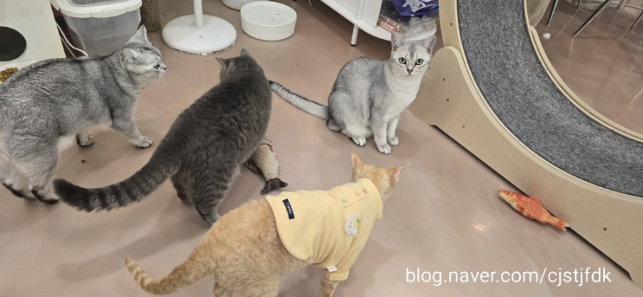 사장님이 만드신 캣타워를 귀여운 아이들이 잘 이용하니 사장님이 참 뿌듯하실것 같아요.